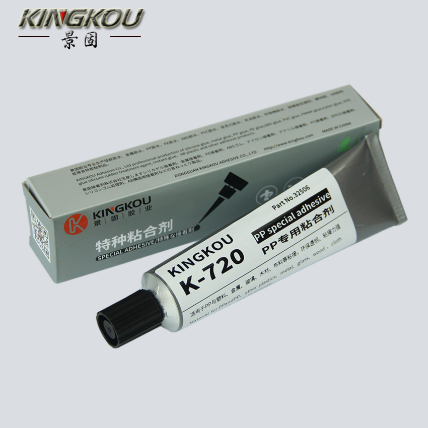 景固KINGKOU K-720 PP(聚丙烯)專用粘合劑 系復(fù)合型合成樹脂膠水,主要用于粘接PP塑料以及PP與其它材質(zhì)的大面積粘接。該膠水粘稠度適中,常溫固化,使用方便,可機(jī)器涂膠、點(diǎn)膠以及人工刷膠。膠水完全固化后呈透明軟質(zhì)狀態(tài),完全不發(fā)白、防水、防蝕、防銹、密封、防水性能好。