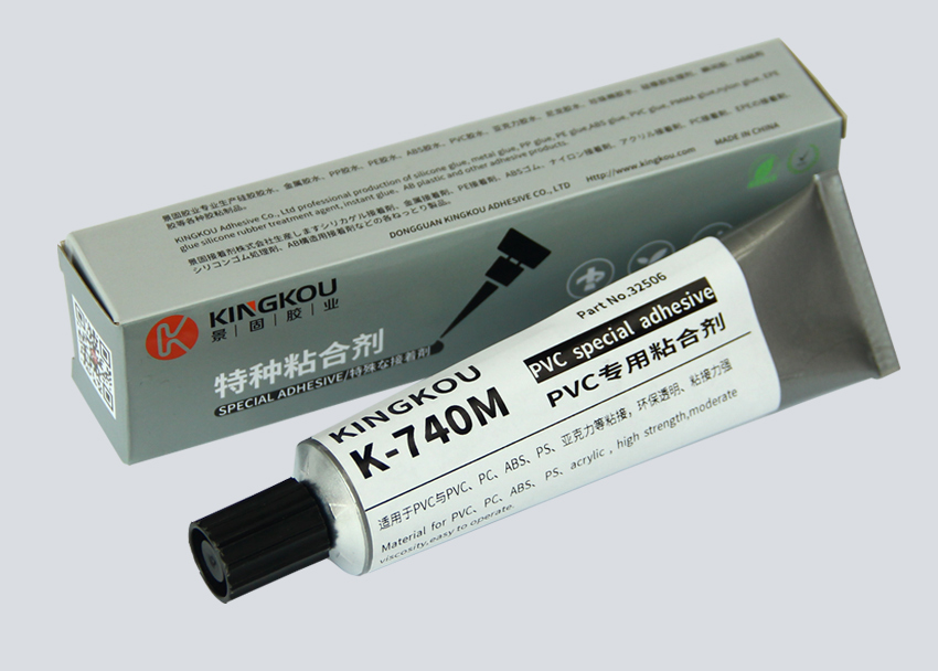 K-740M中粘度適合于PVC塑料件的接榫及大面積PVC塑料的粘接,流動性適中,透明度較好