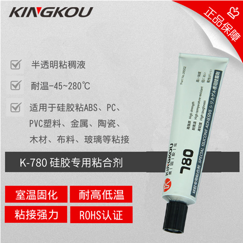 景固K-780是一種單組分、中性、快速固化、高強度,無腐蝕的的通用型硅膠粘合劑,針對硅橡膠與金屬(不銹鋼、鋁合金、磁鐵等)、非金屬、塑料(PC、ABS、PVC、尼龍等)、玻璃、木材、絨布、皮革等材質(zhì)的常溫硫化粘接,具有突出的耐高、低溫性和耐老化性,優(yōu)異的電器絕緣性和防潮抗震性,避免了傳統(tǒng)膠水粘接后發(fā)硬變脆、出現(xiàn)白化、氣味重、耐侯性差等缺點,該膠透明環(huán)保、無刺激性異味、柔軟度好,固化后呈軟質(zhì)彈性狀態(tài),可彎折,不發(fā)白,強度高,耐酸堿,防水性能優(yōu)良!